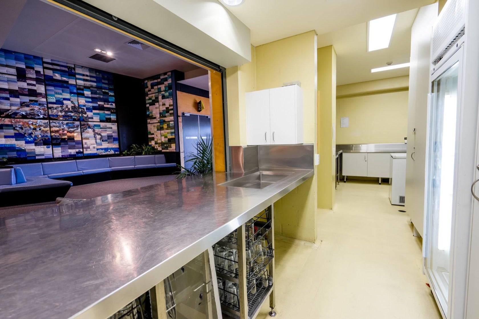 Venue 114’s Commercial Kitchen is located on the ground floor in close proximity to the halls with servery points to the Foyer and Large Courtyard. This space is available for hire in conjunction with an event; not available for exclusive hire. This space includes stainless steel benches, dishwasher, glass washer, stoves, commercial ovens, deep fryer, cold room, refrigerators and small freezer.