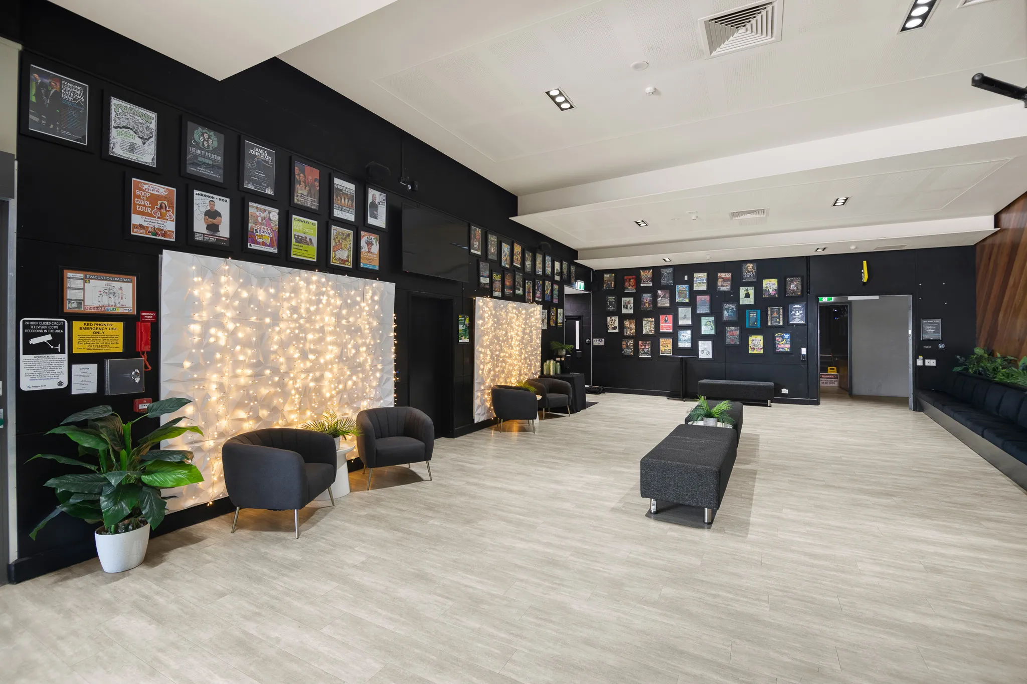 The Foyer is a general use space on the ground floor located at the hall entrances and accessible through the large courtyard and main entrance. Equipped with general seating, kitchen servery points and restroom facilities, this space is ideal for a pre-event function and can accommodate up to 110 standing guests. This space is not available for exclusive hire during normal business hours.