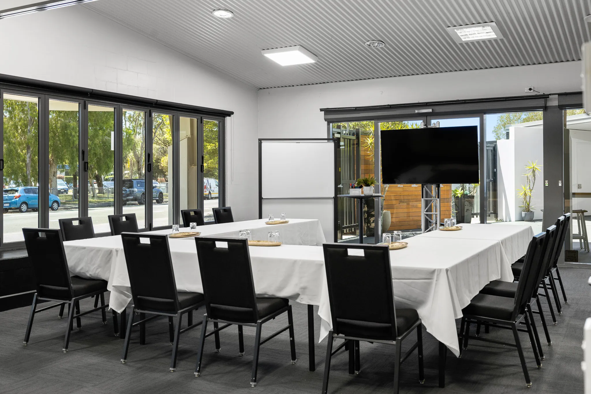 Situated on the ground floor, Meeting Room 1 is an ideal meeting space that includes the small courtyard and a small in-room kitchenette to allow for tea, coffee and simple catering services. This interchangeable space can combine with Meeting Room 2 to create a larger space if required.