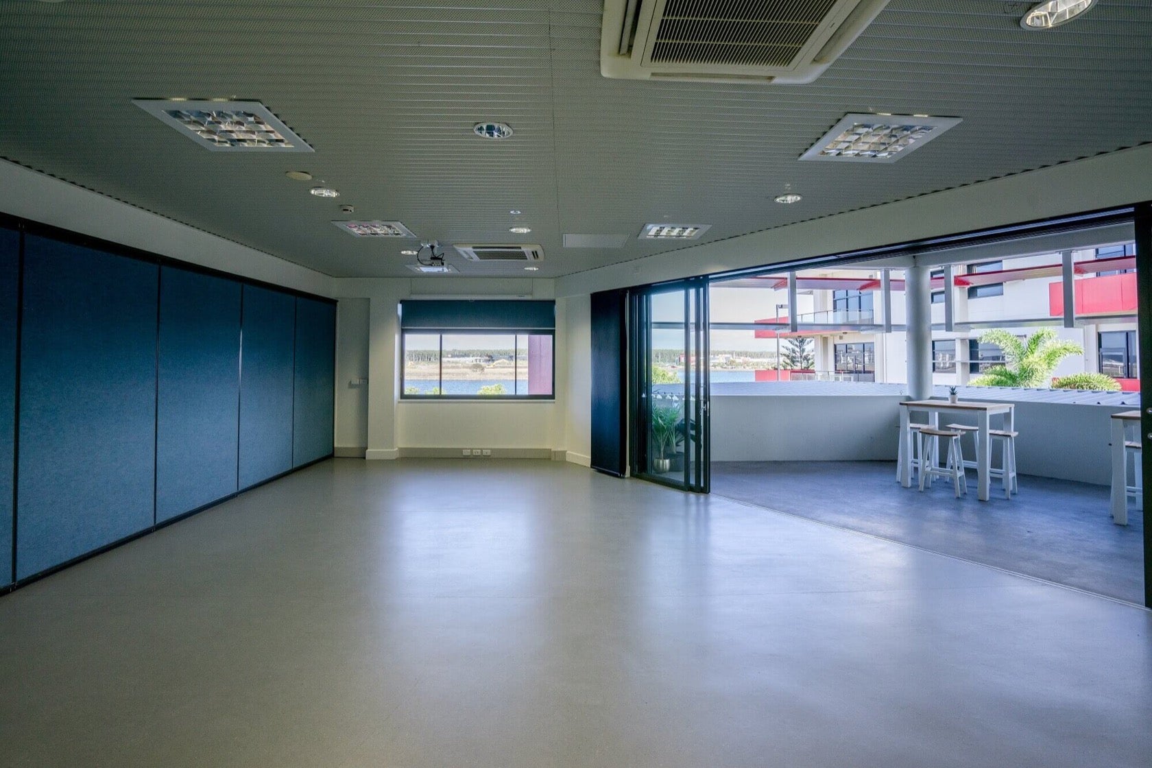 Meeting Room 7 includes a projector and screen, balcony with views of Lake Kawana and is in close proximity to a shared kitchenette and amenities. This space is interchangeable and can combine with Meeting Room 6 or Meeting Room 5 and 6 to create a larger space if required.